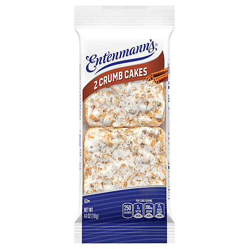 A family favorite for generations, the Entenmann's Crumb Cake is a great complement to a cup of coffee in the morning. Each package contains 2 cakes, perfect for breakfast or an afternoon snack. It's soft and moist golden cake topped with sweet cinnamon crumbles will have you wanting more!