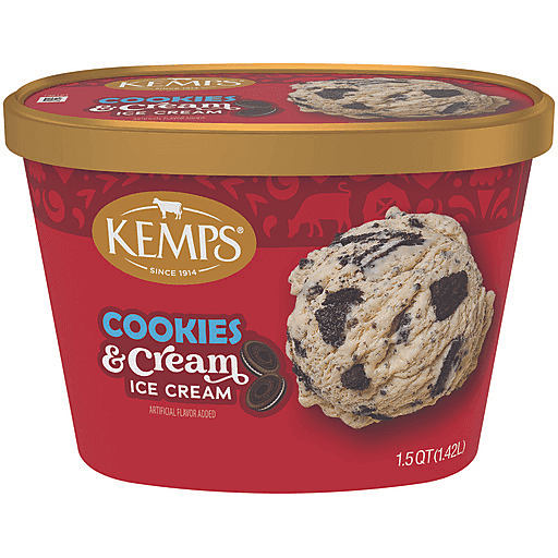 Delight your sweet tooth with a delicious bowl of Kemps Cookies & Cream Ice Cream. Our Cookies & Cream ice cream features creamy vanilla ice cream loaded with chocolate sandwich cookies that the whole family will love. Enjoy this delicious ice cream by the scoop with a cone, in a bowl with all your favorite sundae toppings, or as a side with your favorite cake. Since 1914, Kemps has been delighting families throughout the upper Midwest with wholesome and delicious dairy products. Farmer owned. Family loved.