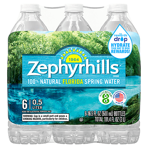 Get back to nature with Zephyrhills Brand Florida Spring Water. Carefully sourced from natural springs located in the great state of Florida, it contains naturally occurring electrolytes for a crisp, clean taste you'll love. And with a better bottle made with 100% recycled plastic* and 100% recyclable, you know that you're not just getting the best that nature has to offer, you're doing your best to help us conserve it too. So grab a pack and get ready for whatever fuels you. Zephyrhills water is available in a variety of sizes, so you can easily stay hydrated no matter where you are. From your gym bag to your hiking pack, at the office, on the go or at home, you can pick up the perfect size for wherever your life takes you. Stock the fridge so your family always has crisp, refreshing hydration on hand. Plus, the more you drink, the more you can earn with The Rewards Drop. Get points with every purchase toward event tickets, merchandise and more – see packaging for details. It's one more reason to enjoy the distinctively fresh taste from the Sunshine State. *20 oz, 700mL, 1L, 1.5L still water bottles only. Excludes label and cap.